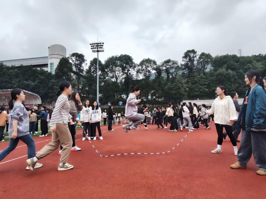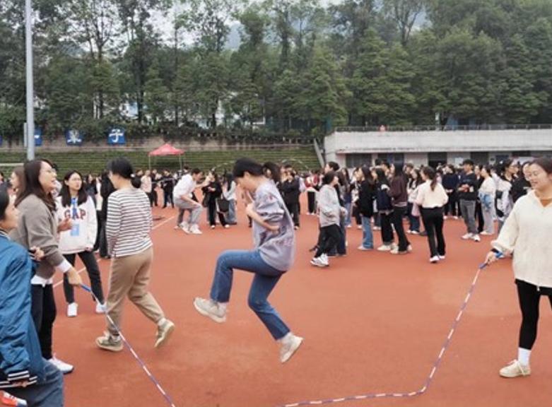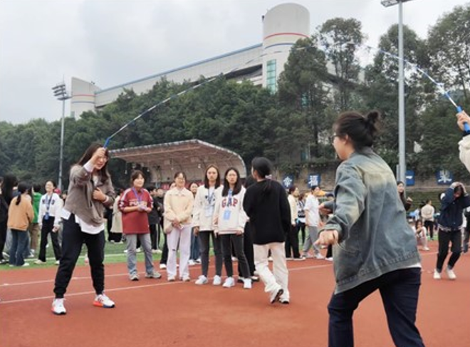 图九 我院研究生运动员正进行“8”字绳跳绳项目