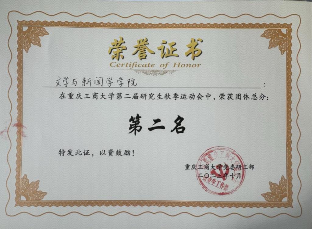 10月28日上午9时,为弘扬体育精神、增强师生体魄,重庆工商大学第二届研究生秋季运动会在南岸校区南区田径场隆重举行。yl7703永利集团全体研究生运动员团结拼搏、勇敢奋进,荣获团体总分第二名的好成绩!
