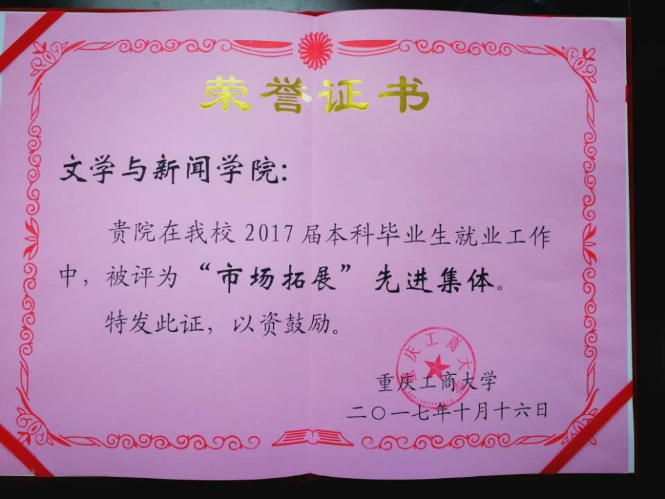 我院首次荣获2017届毕业生就业工作“市场拓展”先进集体,殷海燕老师、周晋老师荣获“优秀就业工作者”,王凌峰老师荣获“就业帮扶先进个人”。学院分党委书记段庸生代表学院领奖。