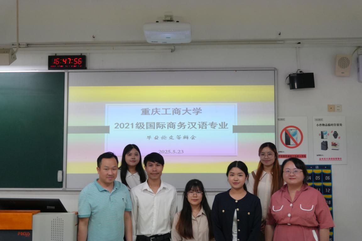 在答辩过程中,学生依照“陈述→评委提问→解答”顺序,聚焦跨境商务贸易往来、跨文化管理、中外合作等领域,将语言能力与商务实务深度融合,彰显了“汉语+商务”的专业培养特色,赢得了答辩评委的一致好评。
