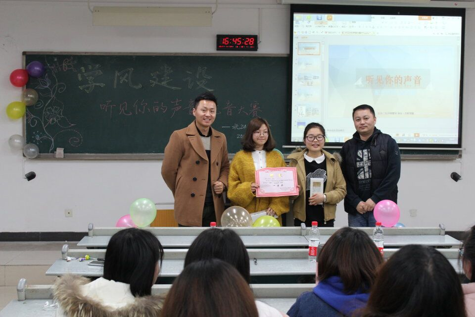 为积极响应学校“开展学风建设,营造良好公寓学习氛围”的号召,11月24日下午,文新学院北24楼栋成功举办了学风建设之“听见你的声音”配音大赛。重庆首个独立青年剧团资深演员和舞美设计师许翔老师、重庆工商大学公寓管理科陈剩勇老师,北24楼管会主任杜建清老师及北24栋部分同学参加了此次活动。