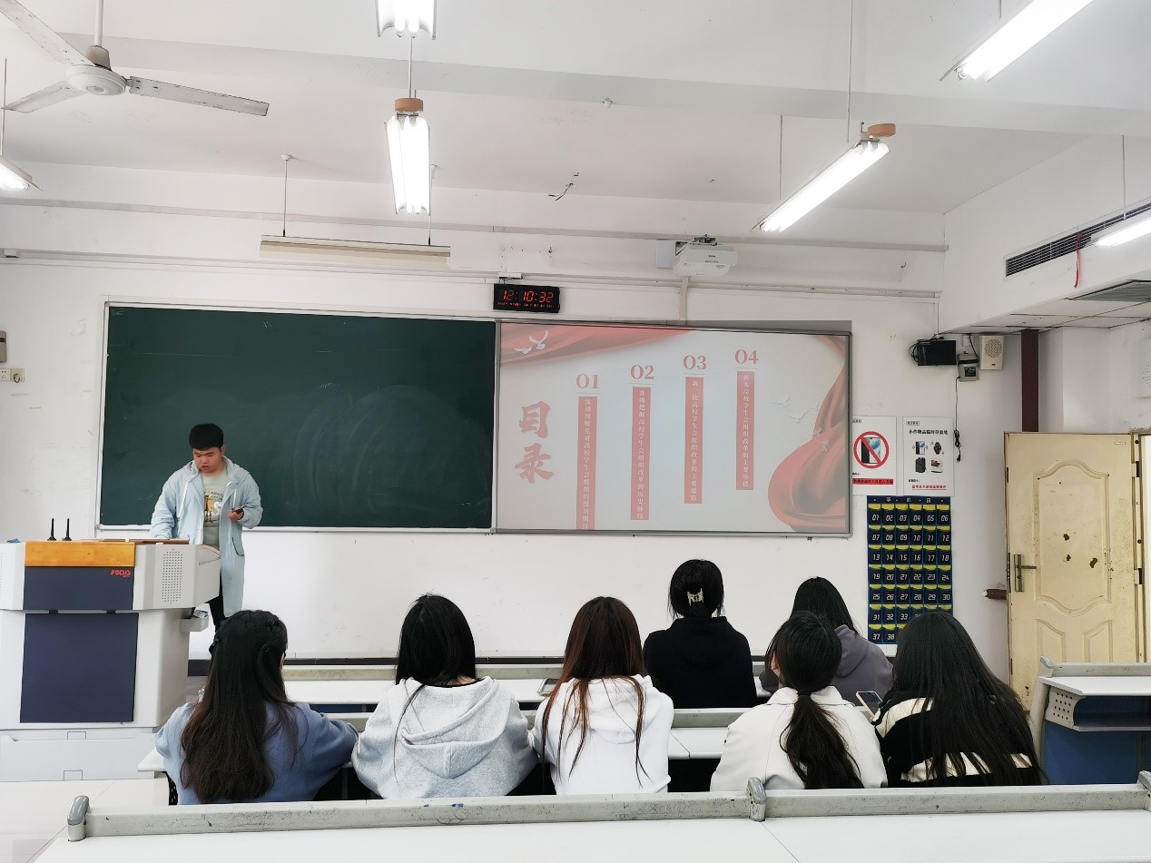接着,院主席团成员周静雯带领大家从14组关键词读懂党的二十大报告。他从新时代伟大变革、三件大事、中国式现代化、实施科教兴国战略等14个关键词出发,详细为大家解读了二十大报告内容,带领工作人员整体把握党的二十大报告内容与框架,从而引领同学们领悟和学习二十大精神。
