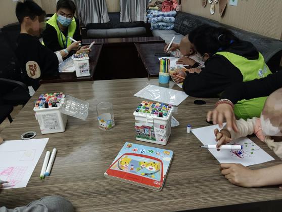 随后,志愿者们前往不同的房间邀请小朋友们参加绘画活动,耐心引导孩子们发挥丰富的想象力,在画纸上留下属于自己的缤纷一笔。在志愿者和孩子们的积极互动下,一件件精美的绘画作品栩栩如生的呈现出来,活动室充满了欢声笑语。