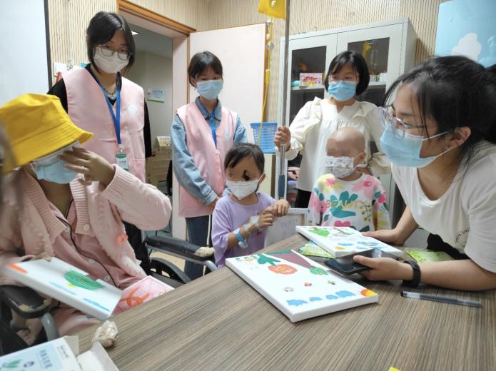 在重庆医科大学附属医院儿童医院(渝中区本部),志愿者们陪同肿瘤外科的小朋友们开展“绘春天”主题绘画活动,与小朋友们一同畅想春天景致、构思绘画内容、进行艺术创作,循循善诱地教他们绘出春天的模样,帮助小朋友更好地感受春天。在春意盎然的四月,给尚处在病中的小朋友带去如沐春风般的美好。基地负责人表示,这次活动让小朋友们感受到了欢乐与慰藉,也希望他们能像春天的嫩芽一样茁壮成长。