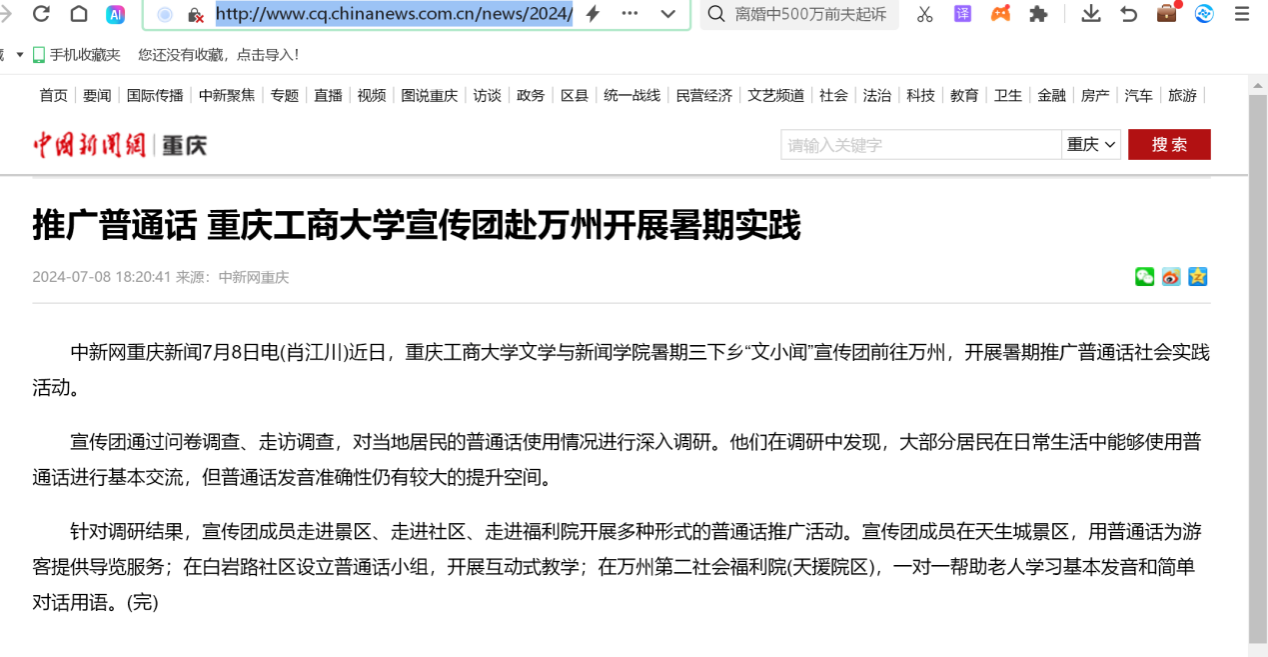 重庆工商大学学生走进万州 开展暑期“三下乡”社会实践-中新网重庆http://www.cq.chinanews.com.cn/news/2024/0711/39-46281.html