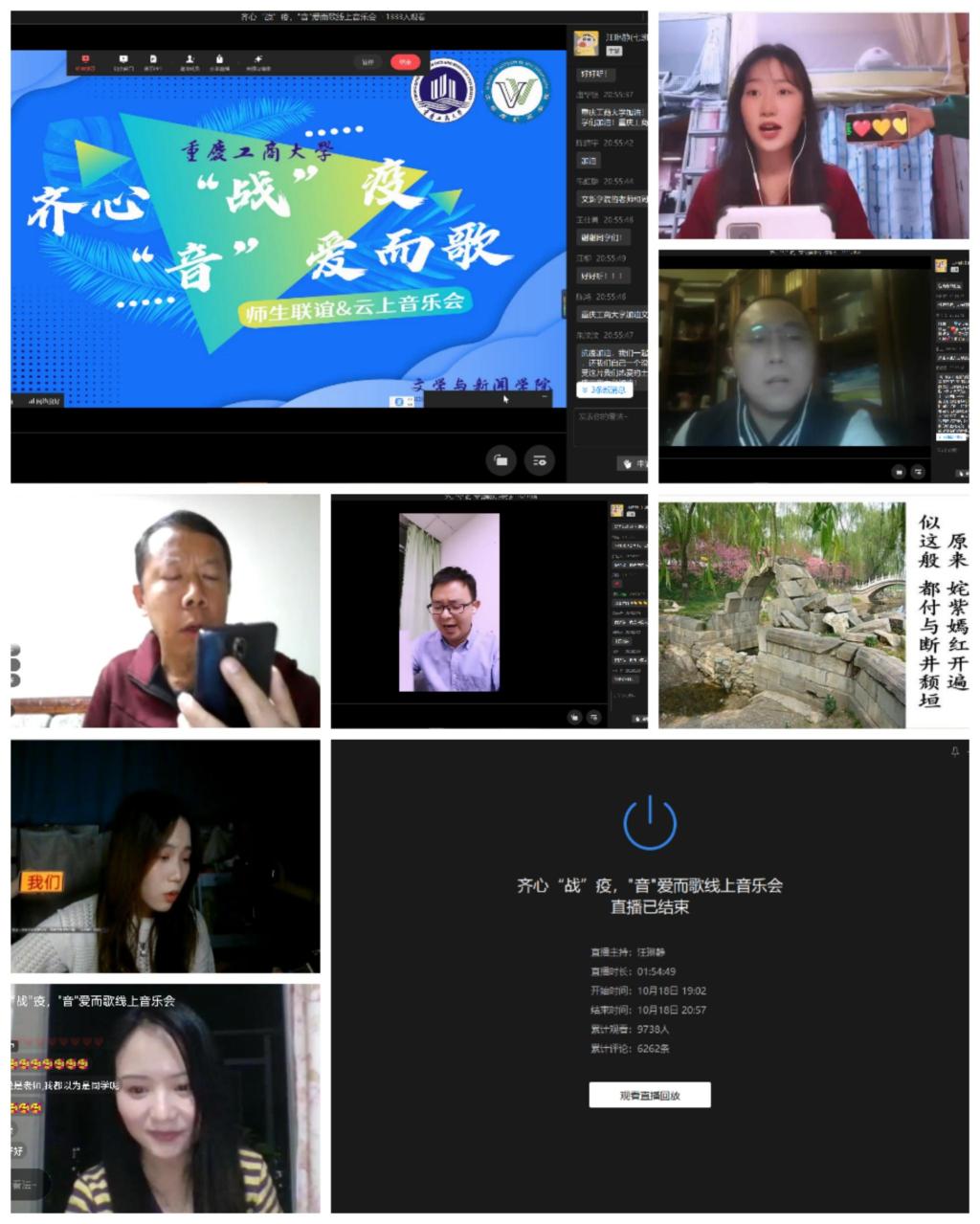 2022年10月18日晚上七点,重庆工商大学yl7703永利集团在企业微信线上举行了“齐心战疫,音爱而歌”“云”师生音乐会。yl7703永利集团党委书记于频致辞,累计近10000人次在线观看。