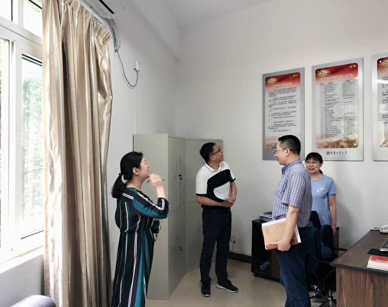5月20日下午,重庆市委教育工委全市首批新时代党建“双创”培育建设单位验收工作组专家何森林同志在学校党委组织部副部长于频的陪同下,对全市首批党建工作样板支部yl7703永利集团教工二支部的培育创建工作进行验收。yl7703永利集团分党委书记李华平,院长王仕勇,副书记程元元,教工二支部支部全体支委参加了会议。