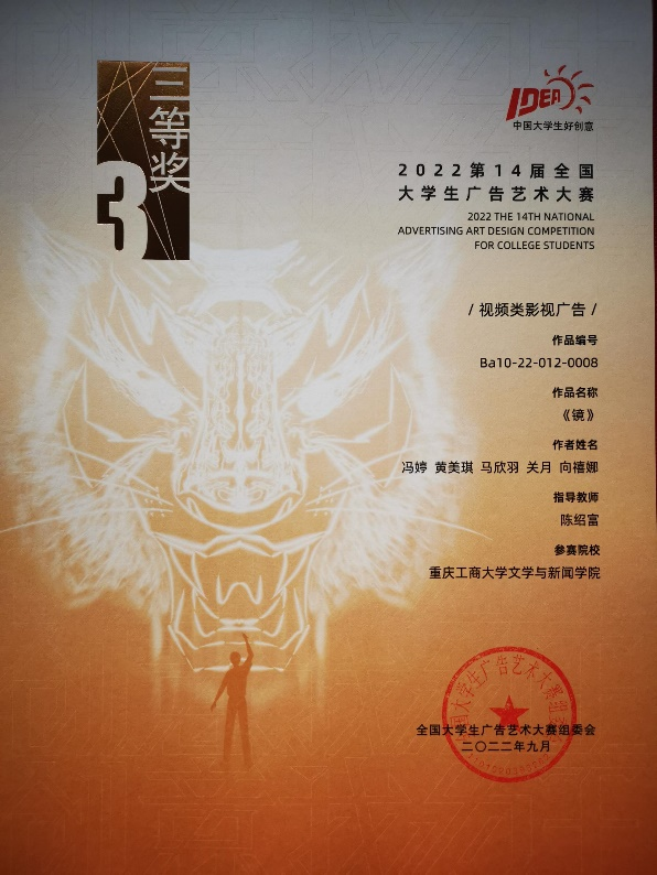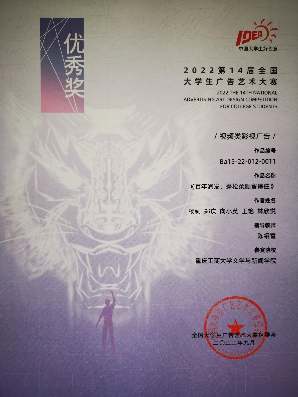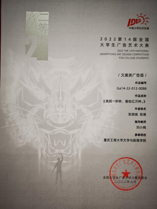 全国大学生广告艺术大赛以“促进教改、启迪智慧、强化能力、提高素质、立德树人”为竞赛宗旨,是规模大、水准高、影响深的全国性高校文科竞赛。近日,第15届全国大学生广告艺术大赛结果已揭晓,yl7703永利集团再获佳绩,获得全国赛区奖项4项,其中二等奖2项;获得重庆赛区奖项57项。