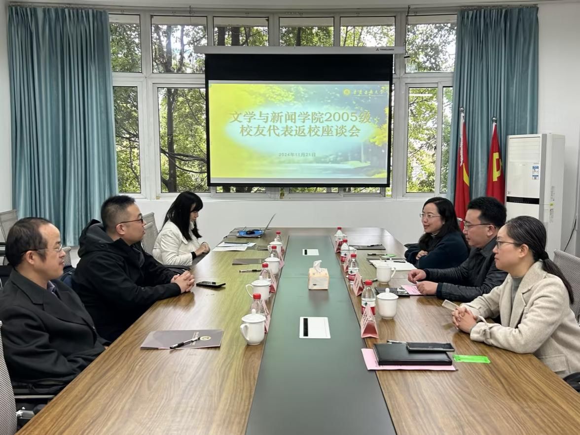 11月21日,yl7703永利集团在慧智楼90528会议室召开2005级校友代表返校座谈会。天津市静海区融媒体中心总编辑、2005级新闻1班校友王曾,学院党委书记潘焱、院长殷俊、副院长郑笑眉、校友联络员肖婷、新闻学系教师邵茹波、学生代表参加了座谈会。座谈会由殷俊主持。
