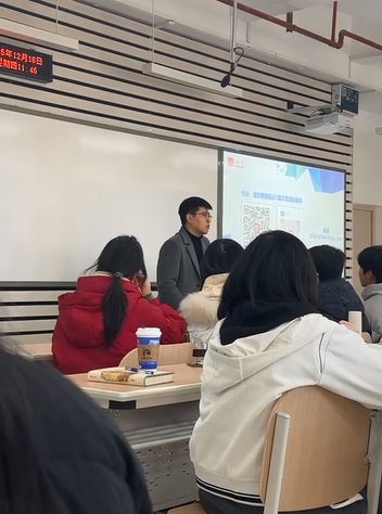 12月18日上午,学校涵智楼1008教室邵茹波老师的《新闻采访与写作(高阶)》课堂上,突然传来一阵热烈的掌声。一位拄着拐杖的小伙子走进来,他用两节课的时间,为2024级新闻一、二班同学分享了他的新闻之路与新闻理想。
