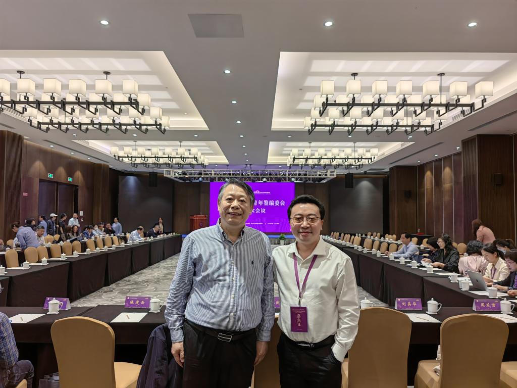 院长殷俊教授与中国新闻传播教育年鉴编委会主任、中央民族大学新闻与传播学院特聘院长、华中科技大学新闻与信息传播学院特聘教授张昆合影