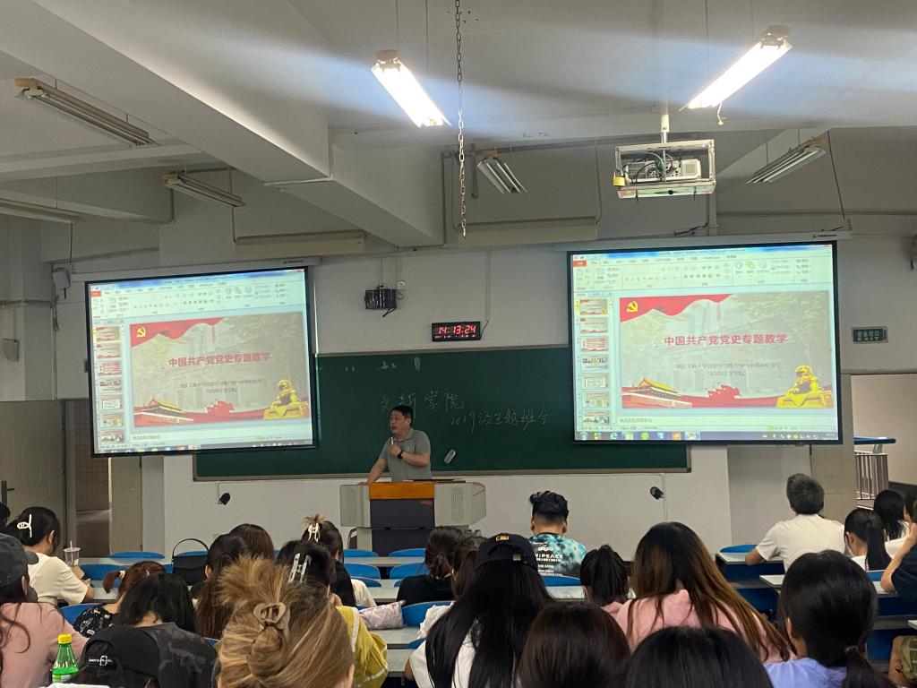 “今年是中国共产党成立100周年。百年征程波澜壮阔,百年初心历久弥坚。从播下革命火种的小红船,到领航复兴伟业的巍巍巨轮,在百年奋斗历程中,我们党领导人民取得了举世瞩目的辉煌成就,书写了波澜壮阔的历史画卷,留下弥足珍贵的宝贵经验和精神财富…”2021年6月25日下午两点半,文新学院分党委副书记程元元在90326教室19级主题班会上为同学们开展了中国共产党党史主题教学。