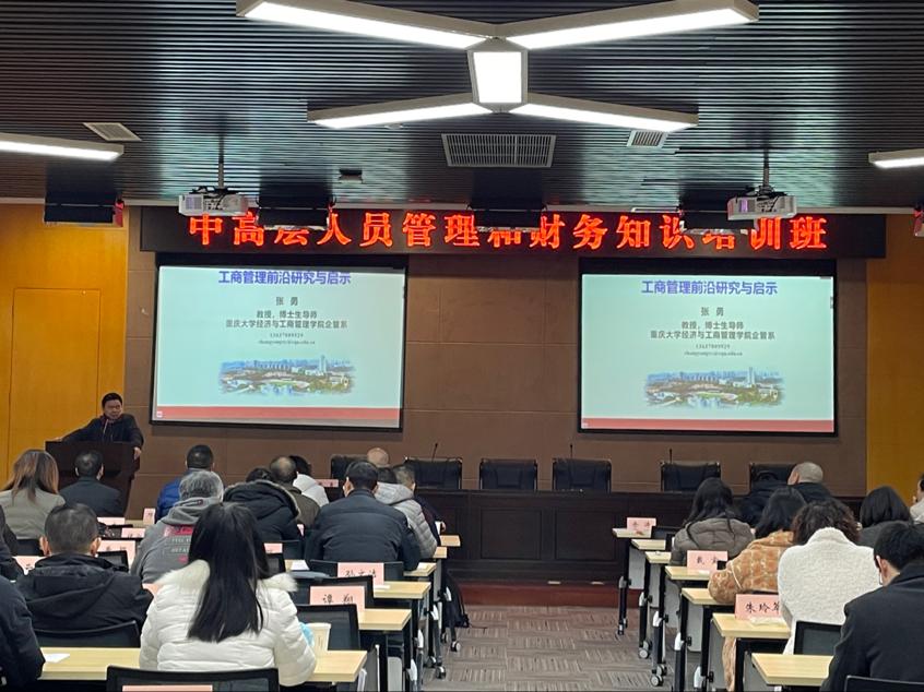 2021年12月11日,由中科普传媒发展股份有限公司主办、重庆工商大学yl7703永利集团承办“中高层人员管理和财务知识培训班”的第五次课程于重庆工商大学图书馆会议中心多功能厅召开。本次课程旨在加强中高层人员自身的业务素质学习、提升管理水平。会议参会人员有重庆大学张勇教授、重庆工商大学崔飚教授、中科普集团的中高层人员。